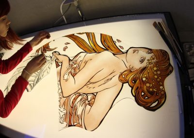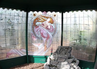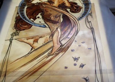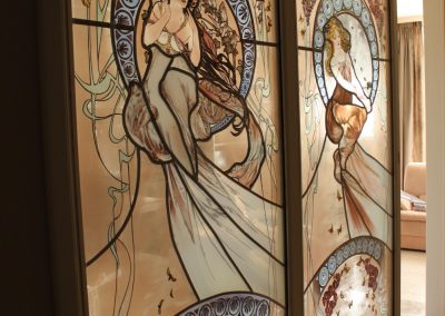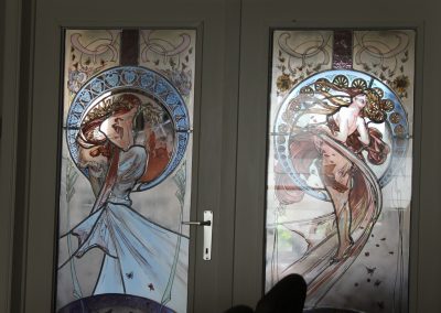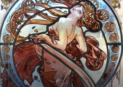 Mucha gebrandschilderd 3 Information sur le projet Pour 2 de ses projets, Artglas a fabriqué ses vitraux sur base d’un concept créé par Mucha. Retour au sommaire