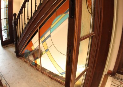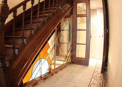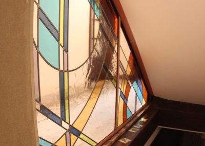 Cette ancienne habitation située à Bruxelles respire l’art nouveau. Etant donné que les caves étaient également aménagées comme pièces d’habitation, il fallait y apporter un surcroît de lumière. La solution ne devait pas seulement être fonctionnelle, mais également esthétique. Les clients choisirent un projet moderne de John Dierickx, préservant l’unité entre les anciens vitraux et le nouveau vitrail. Le côté artisanal est conservé, mais a reçu un look contemporain.