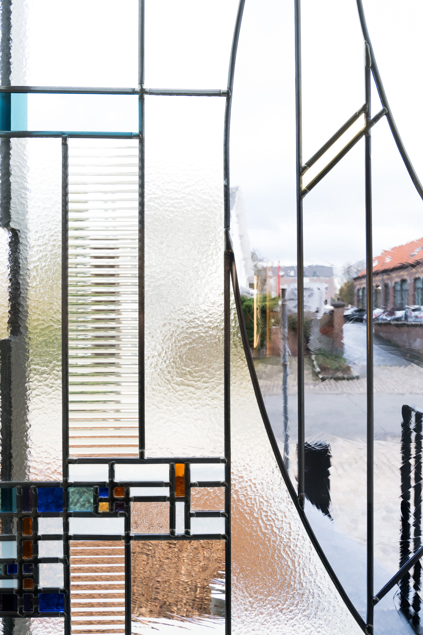 Voor de recente verbouwing van hun woning in Sint-Pieters-Leeuw zochten Kris Cobbaert en haar man manieren om een klassiek project op een moderne manier te vertalen. De oude glasramen met ruitjes in groen en geel waren de inspiratie om op zoek te gaan naar moderne glas-in-lood interpretaties. In Studio Artglas vonden ze een perfecte partner.